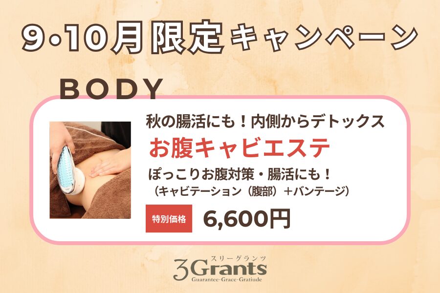 食欲の秋を元気に迎えるためにお腹キャビエステで腸活しませんか?