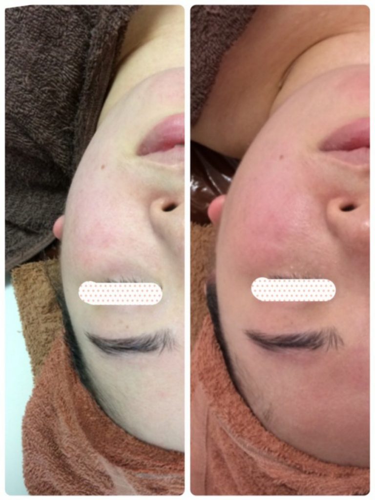 毛穴が小さくなり、お顔も小さく引き締まったのがお分かりいただけますでしょうか。