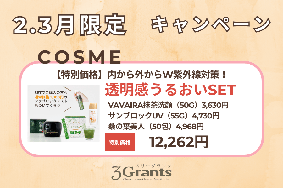 なんと、スリーグランツのホームケアとして人気の美白ケアアイテムたちがお得に購入できる「透明感とうるおいSET」が期間限定特別価格に♡