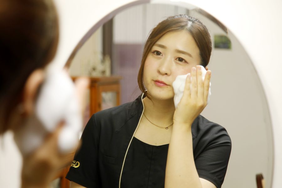 サロンケアの中にも取り入れており、弾力のある泡とほのかに薫る抹茶と独自開発成分のナツダイダイ果皮油の香りに癒されると大好評です!!