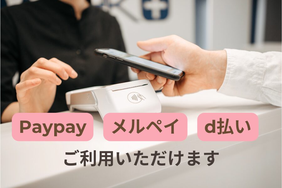 PayPay、メルペイ、d払いに対応しております。