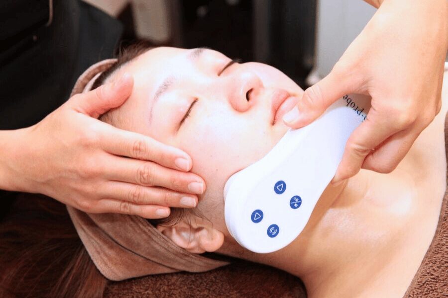 (ゲルクレンジング・濃密泡洗顔・表情筋へアプローチする美容マシーン施術・お仕上げ)