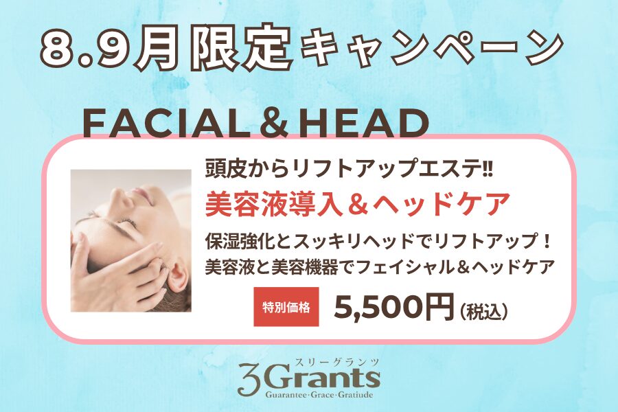 そんな方にピッタリな美容液導入での保湿エステと美容機器を使ったヘッドマッサージの特別エステがキャンペーン価格でご予約いただけます♡